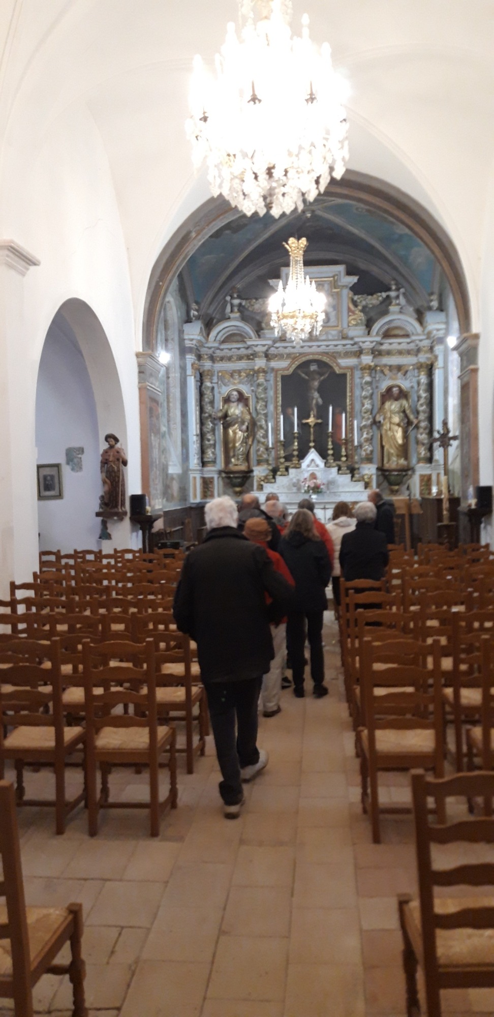 Convivialité de rigueur avant de visiter l'église avec les commentaires d'une amie de Bernard.