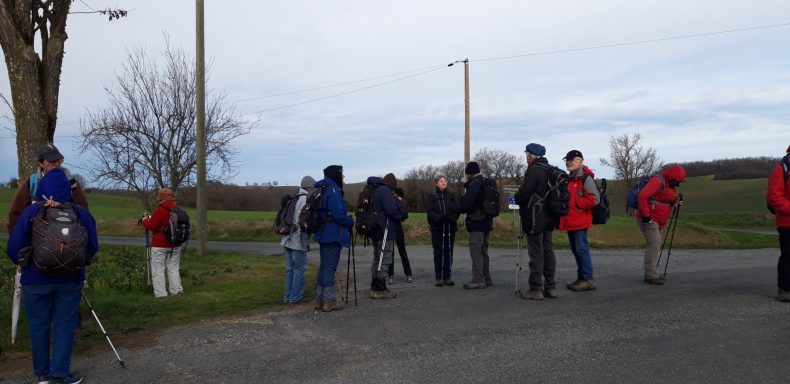 Le 20 Novembre Christine a conduit une 11 courageux sur le parcours du Pistoullé en partant de Beauville malgré une température basse et un air vif.
