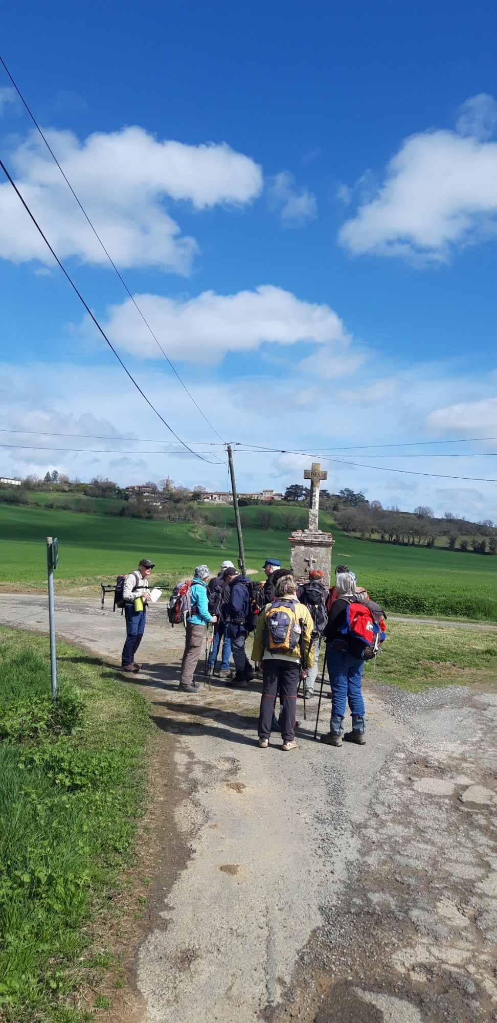 15 participants à cette sortie pour une rando de 7,5 ou 8,5Km près de Saint-Anatole Tarn. Le chemin de Bagatelle entre bois et vignes. Un pilier pour soutenir Nicole à la Saint-Pierre-du-puits où nous avons une vue sur les Pyrénées.